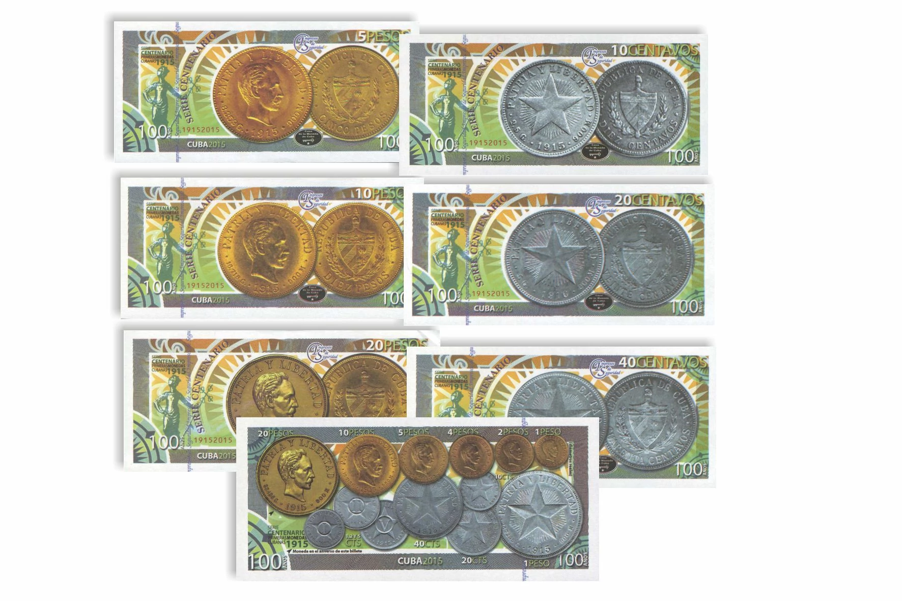 100 éves érmék bankjegyeken, 1, 2, 5, 10, 20, 40 centavo, 1, 1, 2, 4, 5, 10, 20 peso, Kuba, 2015