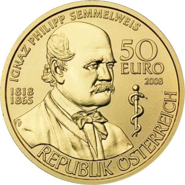 Az anyák megmentője aranyba öntve, 50 euró, arany, Ausztria, 2008