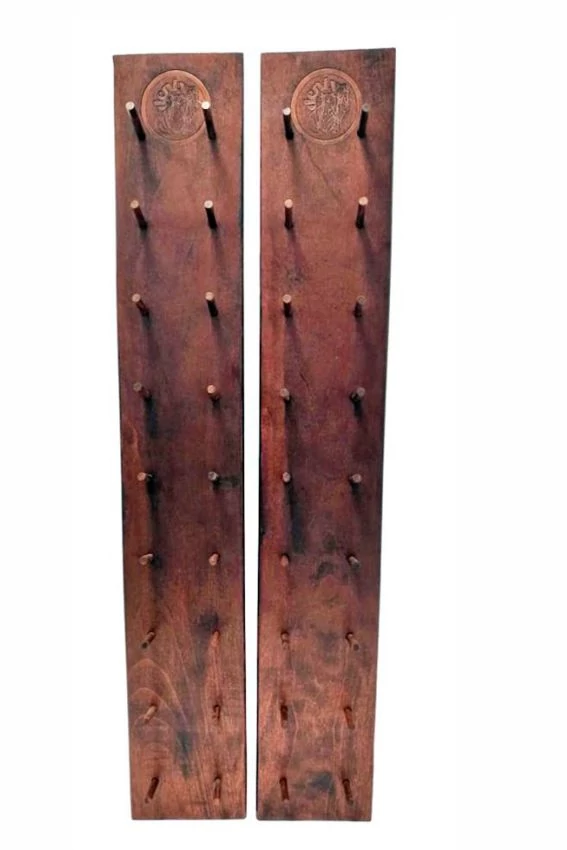 Nagyméretű fa állvány, melyre különböző méretű díszfegyverek, díszpisztolyok, kardok és dísztőrök helyezhetőek.