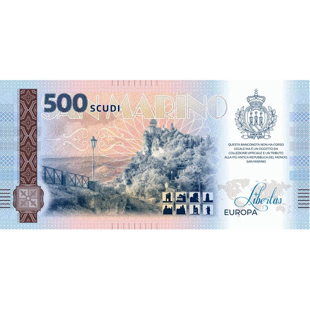 Fantáziapénz a történelmi valóságról, 500 scudo, San Marino, 2025