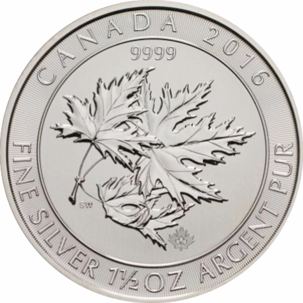 Ez a különleges kanadai érme 1,5 uncia színezüstből készült, ami ritkaságnak számít a nemzetközi érmekibocsátásban. Előlapján a jellegzetes juharlevél, Kanada szimbóluma látható, hátlapján pedig II. Erzsébet királynő portréja. Különleges súlya és kivitele miatt keresett darab a gyűjtők körében.