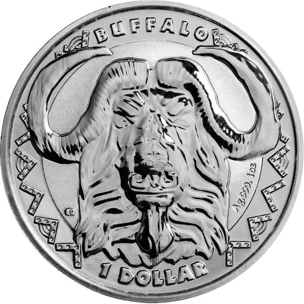, az oroszlán és a leopárd. Ezen a szépen kidolgozott színezüst érmén a bivalyt láthatjuk, az állat feje mintha egy afrikai maszkot jelenítene meg.