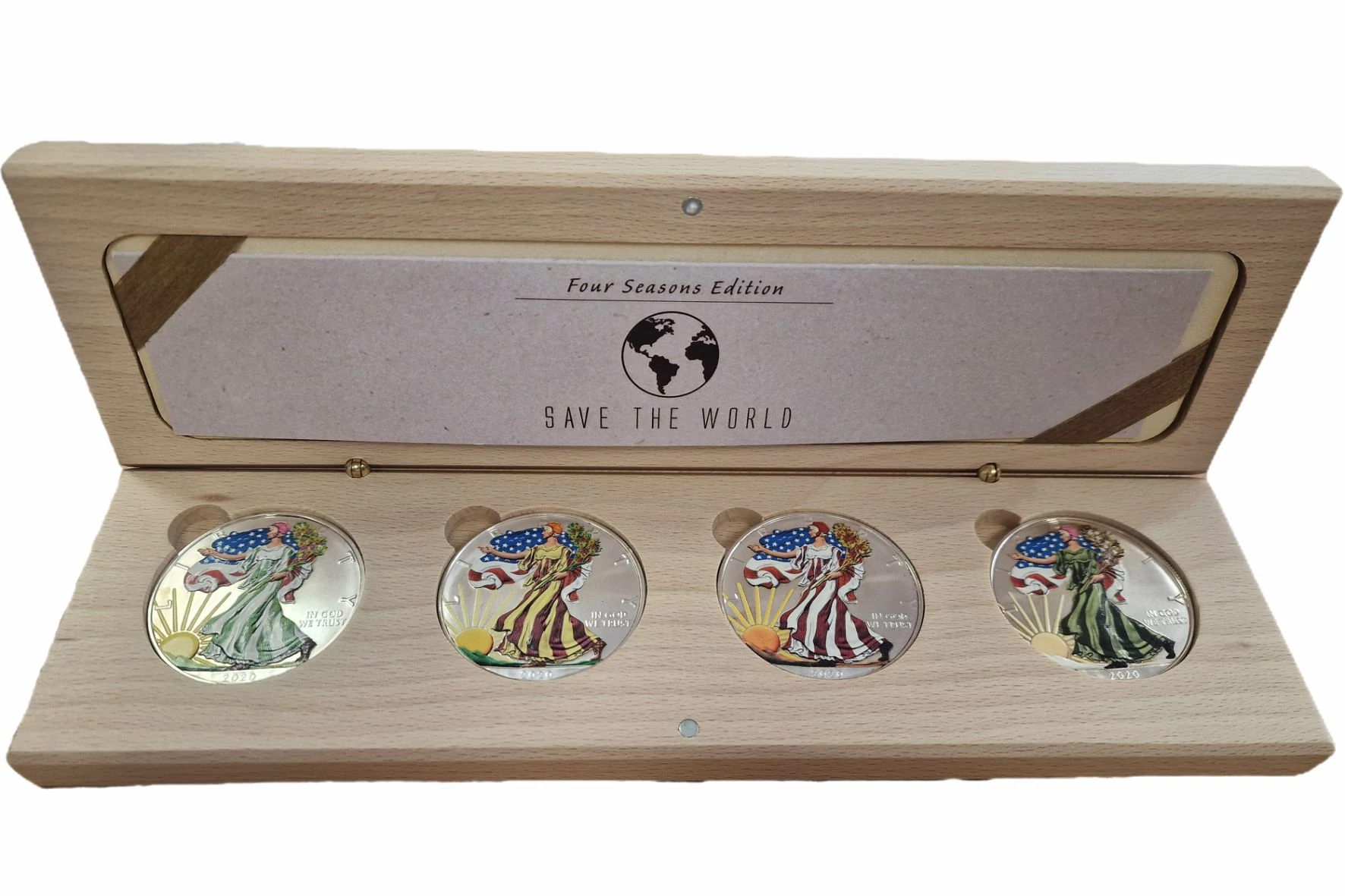 A népszerű Sétáló szabadság (Liberty), vagy más néven Ezüst sas egy unciás befektető érmék évről évre megjelennek egy négy érmét tartalmazó szettben is, melyek a négy évszakot szimbolizálják. Ez az érmeszett egy nagyon aktuális témát dolgoz fel: a kedvelt érmenégyes, a Föld pusztulását, a természet ember által okozott sebeit mutatja be.