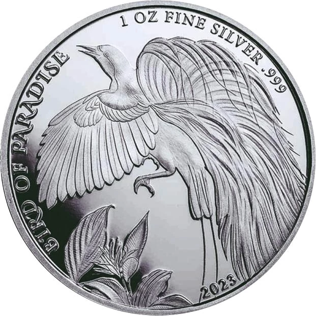 kibocsátásában megjelent ezüst befektető érmén, a világ egyik leggyönyörűbb madara, a paradicsommadár látható. A hím parádés tánccal és énekével igyekszik felkelteni a tojó figyelmét. Ez a pompás tollazatú madár az egzotikus ország jelképe és az ország címerében is megjelenik.