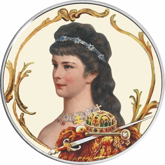 Wittelsbach Erzsébet, közismert becenevén Sissi, magyar királynét 1867-ben koronázták meg a budavári Mátyás-templomban akkor, mikor férjét magyar királlyá koronázták. A magyarok között mindig népszerű, kedvelt királyné közbenjárt a kiegyezés létrejöttében. Az érmen a magyar koronázási ékszerek is helyet kaptak.