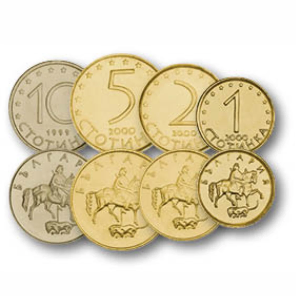 1, 2, 5, 10, 20, 50 sztotinka, 1, 2 leva